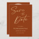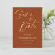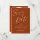 Capture the essence of your upcoming wedding with this chic and eye-catching Burnt Orange Photo Modern Wedding Save The Date card. This stunning minimalist design features a sleek and modern layout, accentuated by elegant calligraphy script typography. The photo framed in a beautiful arch and a monogram on the back allow you to make it even more personal. The warm and inviting rust orange hue perfectly captures the beauty of the autumn season, making it a great fit for any fall wedding. The minimal design is perfect for couples looking for a trendy and contemporary approach to their wedding stationery.