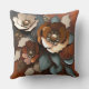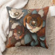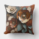 Add a pop of colour to your decor with this throw pillow featuring a patina print of large floral designs in burnt orange, dark orange, teal, beige, and rust. This bold, cosy accent brings warmth and style to any space with its earthy, vibrant hues.