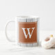 Add your initials or other text to customise this simple Burnt Orange Rustic Monogram Mug. This trendy and chic mug is perfect for your morning coffee.