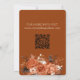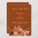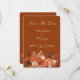 This fully customisable wedding save the date card features a burnt orange background with orange floral decoration. There is space on the back to add more details about the wedding, such as your wedding website and QR code. This save the date card is perfect for a rustic, earthy, or bohemian wedding. This design is part of my Terracotta Treasures Wedding Collection. Check it out here https://bit.ly/terracottatreasures.