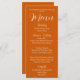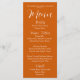Simple style, burnt orange colour dinner menu card for your wedding that features white, stylised script along with your personalised information. Edit menu card and replace wedding names and date along with menu items that will be served at your wedding reception. Select your menu card style as desired.