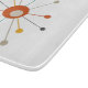 This fabulous mid century modern cutting board features an atomic starburst in the colors of teal blue, burnt orange, tan, yellow, and dark gray. This will make a colorful, and practical, addition to your kitchen decor!