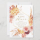 This baby shower invitation features rustic watercolor flowers in terracotta, burgundy, burnt orange, yellow, blush with beige and brown pampas grass, and a gold hexagon frame. For more advanced customisation of this design, please click the "customise further" link. Matching items are also available.