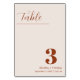 Wedding table number cards with burnt orange modern lettering and "Table" in modern calligraphy font. The design has a white background with delicate black flecks for a one-of-a-kind look.