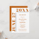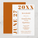 Burnt orange and white graduation party invitations or graduation announcements, just change the wording to fit your event. MORE PRE-DONE COLORS in our store.