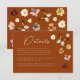 This elegant burnt orange boho wedding details card features a rich, warm background with creamy beige modern calligraphy. Accented by delicate wildflowers and a butterfly in soft fall colours, this enclosure card adds the perfect earthy, romantic touch to your wedding suite. Ideal for outdoor, bohemian, terracotta, or fall weddings, it's designed to provide important information like accommodations, directions, or itinerary in a beautifully simple and aesthetic format. Pair it with matching invites and RSVP cards for a cohesive modern boho look.