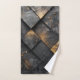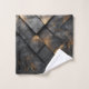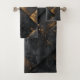 A digital rendering of a rough, burnt steel wallpaper background in black and gold.