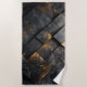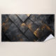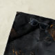 A digital rendering of a rough, burnt steel wallpaper background in black and gold.