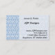 Blue pattern (made from hexagons, bars, triangles, and circles), are multiplied over the entire card. Left vertical margin is dark colour, remainder of pattern is a fainter backdrop to the pertinent business information of Name, Business, contact numbers (all to be personalised).