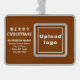 Merry Christmas! Ornament with Merry Christmas greeting texts, your business or company name, logo, address and phone number. Designs are light brown and white texts on brown background and on framed landscape format rectangle shape. Ornament to decorate the Christmas tree in your store, shop or office. Ornament to visually greet your customers this holiday season and to advertise your business or promote your brand name. Customise it and use it to build brand name awareness. Please check the appearance after uploading logo and typing texts. If the appearance is pleasing to you, you can place your order now. If you need to resize and move the logo and texts to fit on this ornament, please change in the design tool. You can also make other changes according to your preference in the design tool such as changing the background colour, font colour and font style. Merry Christmas! Wishing you more sales this holiday season.