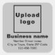 Customisable sticker that you can put your business name, address and phone number. You can use it as marketing material to advertise your business or to promote your brand name to customers or clients. Sticker that you can use to build brand name awareness. You can also use it as accessory of product packaging materials. Designs are black texts on grey background and square shape. To customise this sticker, upload your business logo, type your business or company name, address and phone number. After uploading logo and typing texts, please check the appearance. If the appearance is pleasing to you, you can place your order now. If you need to resize and move the logo and texts to fit on this sticker or on other sizes that you will choose, please change in the design tool. You can also make other changes according to the appearance that you prefer in the design tool such as changing the background colour, font colour and font style.