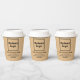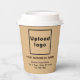 Customisable paper cup for your cafe business. Paper cup with the address of your coffee shop business for customers to know and easily find it when they will come back again or recommend it to their families or friends. Paper cup with your business phone number for customers to know the number to call when they will order again by phone. Paper cup colour is light brown and font colours are dark brown and black. To customise this paper cup, upload your business logo, type your business or company name, address and phone number. Please check the appearance on front and back sides after uploading logo and typing texts. If the appearance is pleasing to you, you can place your order now. If you need to resize and move the logo and texts to fit on this paper cup, please change in the design tool. You can also make other changes according to your preference in the design tool such as changing the cup colour, font colour and font style. Customise it and use it like a marketing material to advertise your business, promote your brand name or build brand name awareness while your customers enjoy sipping the tasty and aromatic coffee that you served to them.