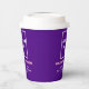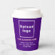 Customisable paper cup for your cafe business. Paper cup with the address of your coffee shop business for customers to know and easily find it when they will come back again or recommend it to their families or friends. Paper cup with your business phone number for customers to know the number to call when they will order again by phone. Paper cup colour is purple and font colours are pink and white. To customise this paper cup, upload your business logo, type your business or company name, address and phone number. Please check the appearance on front and back sides after uploading logo and typing texts. If the appearance is pleasing to you, you can place your order now. If you need to resize and move the logo and texts to fit on this paper cup, please change in the design tool. You can also make other changes according to your preference in the design tool such as changing the cup colour, font colour and font style. Customise it and use it like a marketing material to advertise your business, promote your brand name or build brand name awareness while your customers enjoy sipping the tasty and aromatic coffee that you served to them.