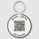 A display image is in the centre. You can replace it with your QR code. Above and below the image, there's a line of black text you can edit to show your company name and a custom message (Shown: Scan To Learn More). The keychain has a black border.