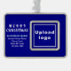 Merry Christmas! Ornament with Merry Christmas greeting texts, your business or company name, logo, address and phone number. Designs are light blue and white texts on blue background and on framed landscape format rectangle shape. Ornament to decorate the Christmas tree in your store, shop or office. Ornament to visually greet your customers this holiday season and to advertise your business or promote your brand name. Customise it and use it to build brand name awareness. Please check the appearance after uploading logo and typing texts. If the appearance is pleasing to you, you can place your order now. If you need to resize and move the logo and texts to fit on this ornament, please change in the design tool. You can also make other changes according to your preference in the design tool such as changing the background colour, font colour and font style. Merry Christmas! Wishing you more sales this holiday season.