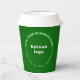 Paper cup with your business name and logo for your cafe business. Customise it and use it like a marketing material to advertise your business. Build brand name awareness while your customers enjoy sipping the tasty aromatic coffee that you served to them. Paper cup colour is green and font colour is light green. Customise this paper cup by uploading your business logo, typing your business name, city or town and state then check the appearance, front side and back side. If the appearance is pleasing to you, you can place your order now. If you need to make changes such as resizing and moving the logo and texts to fit in this paper cup template and according to your preference, click customise further. After making changes, click done.