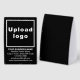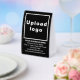 Black paper table tent that you can customize by uploading your business logo, typing your business name, address, phone number, e-mail and website or social media page. Customize and display it on your desk as a marketing material to advertise your business or to promote your brand to customers or clients. Customizable office desk accessory that you can use to build brand name awareness. Please check the appearance after uploading logo and typing texts. If the appearance is pleasing to you, you can place your order now. If you need to resize or reposition the logo and texts, please adjust in the design tool. You can also change the font style, font color and background color in the design tool.