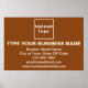 Poster that you can customise to put your business name. You can use it as marketing material to advertise your business or to promote your brand name to customers or clients. Customisable poster that you can use to build brand name awareness. Customise it and display it on the wall of your office, entrance, reception, lobby or in suitable places visible to customers or clients. Designs are light brown and white texts on brown background and landscape format rectangle shape. To customise this poster, upload your business logo, type your business or company name, address, phone number, e-mail and website or social media page. Please check the appearance after uploading logo and typing texts. If the appearance is pleasing to you, you can place your order now. If you need to resize and move the logo and texts to fit on this poster or on other shapes and sizes that you will choose, please change in the design tool. You can also make other changes according to the appearance that you prefer in the design tool such as changing the poster background colour, font colour and font style.