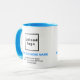Light blue combo mug that you can customise to put your business brand to build brand name awareness while your customers enjoy sipping the aromatic and tasty coffee or tea that you served to them in your coffee shop, diner or restaurant business. Mug as promotional product, giveaway item or gift to your customers or clients, a marketing strategy to advertise your business or to promote your brand. To customise this mug, upload your business logo, type your business name, address and phone number. Please check the appearance on front and back sides after uploading logo and typing texts. If the appearance is pleasing to you, you can place your order now. If you need to resize and move the logo and texts to fit on this mug or on the size and style that you will choose, please change in the design tool. You can also change the font colour and font style in the design tool.