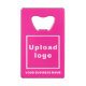 Rectangle bottle opener that you can customise to put your business name and logo to build brand name awareness. You can include it in your promotional products, giveaway items or gifts to your customers, a marketing strategy to advertise your business or to promote your brand name. Design colours are white texts on pink background. Please check the appearance on front and back sides after uploading your business logo and typing your business name. If the appearance is pleasing to you, you can place your order now. If you need to resize and move your business name and logo to fit on this bottle opener, please change in the design tool. You can also change the font colour, font style and background colour in the design tool.