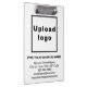 Are you looking for an office supply that you can use to build brand awareness? Do you also prefer simple plain black and white clipboard? Please see this clipboard that you can customise to place your business name and logo. You might like it. To customise this clipboard, upload you business logo, type your business name, address, phone number, e-mail and website or social media page then check the appearance. If the appearance pleases you, you can place your order now. If you need to make changes like resizing and moving the logo and texts to fit in this clipboard template and according to your preference, click customise further. You can also change the colour of the fonts and background. After making changes, click done.