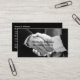 Business Broker and network marketing professional business cards design template created with a graphic of business people shaking hands on the front with your name featured and your contact and business details organised on the flip side. Works perfectly for professionals involved in business networking, business sales or service, financial industry, or business services.
