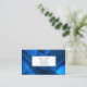This business card is shown in a blue colour abstract pattern.