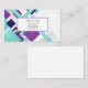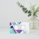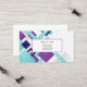 This business card is shown in a multi colour tones abstract pattern with black text.