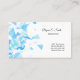 This business card is shown in a abstract pattern with black text.