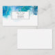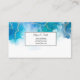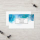 This business card is shown in a blue and gold abstract art print.