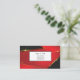 This business card is shown in a black and red golden bling abstract pattern with black text.