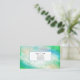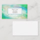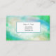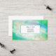 This business card is shown in a blue and green multi colour abstract print with black text.