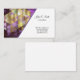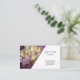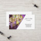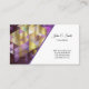 This business card is shown in the basic card stock with a modern abstract print in multi purple colours with black text.