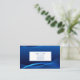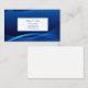 This business card is shown in a blue colour abstract pattern with blue text.