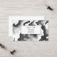 This business card is shown in a grey multi colour abstract camo print with black text.