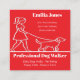 Front Design: The card features a simple, stylish line drawing of a person walking a dog, conveying a sense of trust and professionalism. All the text is fully customisable, including the name, contact information, and list of services—from daily dog walks to puppy visits.