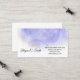 This business card is shown in a purple and gold abstract art print.