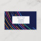 This business card is shown in a deep blue background colour with multi bright colours abstract swirl pattern with blue text.