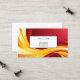 This business card is shown in the basic card stock with a modern abstract print in red and gold tones with black text.
