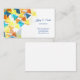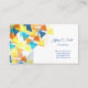 This business card is shown in the basic card stock with a modern abstract print in multi colour tones with blue coloured text.