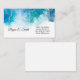 This business card is shown in a blue and gold abstract art print.