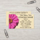 The zinnia plant, both flowers and leaves, were used by many southwestern tribes as medicinal and ritual herbs. Some have said that the Navajo tribe considers the zinnia one of the sacred life medicines. Still other, Pueblo, tribes are thought to believe the zinnia a symbol of wisdom. We do know, however, that zinnias were used by some southwestern tribes to make brightly-coloured dyes and paints. The zinnia, itself, is representative of lasting friendship, constancy and goodness. The magenta zinnia (like the pink and pale pink zinnias of the same colour family), is symbolic of lasting affection. From 1931 to 1957, the lovely zinnia also had the distinction of being the Indiana State Flower. It was replaced by the peony in 1957. The beautiful bloom makes this a fabulous choice of designs for a business card for a number of professionals . . . home business owners, floral arrangers, self-employed, florists, etc. The bloom is featured on a buttery background for better visibility of the information. You may change the colour of the backdrop and, of course, will want to change the information on both the front and back of the card.