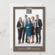 A beautiful and luxurious design featuring a single golden fir Christmas tree decorated with faux shimmering foil baubles, bows and ribbons. It has a golden star at the top and rests against an off-white background that makes it pop. The tree is framed by a thin gold rectangular frame edged with a saddle brown / russet coloured border on which templates for your business year end greeting to customers appear. This traditional, classic and timeless design is ideal for any professional, business or corporate looking for an upmarket and sophisticated design to send to customers, clients, friends and family to thank them for their support over the year. There are additional templates for your qr code (or replace it with your logo) and staff photo on the back. These are ideal for the festive holiday period and convey the spirit of the season. Happy holidays!