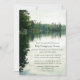 Imagine sitting in a kayak or canoe in the middle of a calm lake surrounded only by the sounds of nature ... this business or church lakeside retreat invitation card for a weekend-long camping jamboree/retreat perfectly captures that feeling of being one with nature. This image was created from my own personal kayaking photographs and features distant evergreens and rock structures reflected on the surface of a calm, lightly rippled body of water under an overcast sky from the point of view of a paddler on the water | Part of katzdzynes’ Rustic Lakeside family reunion / business retreat collection >>> https://www.zazzle.com/collections/119413093835947250