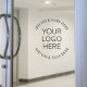 Simple modern window cling featuring your company logo in a circle formed by two lines of personalised text, such as your business name, phone number, slogan, etc.