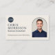 Navy blue business card designed for business consultants who want a polished, modern way to share contact details. The layout includes space for a professional photo along with a QR code, making it easy for contacts to access online information while keeping the design clean and confident. Ideal for client meetings, networking events, and professional introductions. Text, photo, and QR destination are fully editable with a print-ready layout.