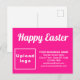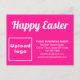 Happy Easter! Wishing you an Easter filled with hope, faith, joy, love and peace! A holiday and season to celebrate this March or April and to advertise also your business. Pink holiday postcard with Easter greeting that you can customise by uploading your business logo and typing your business name, address, phone number, e-mail and website or social media page. Customise it and use it to greet your customers or clients this Easter and as a marketing material to advertise your business or to promote your brand name. Customisable holiday postcard that you can use to build brand name awareness. Please check the appearance after uploading logo and typing texts. If the appearance is pleasing to you, you can place your order now. If you need to resize and reposition the logo and texts to fit on this holiday postcard, please adjust in the design tool. You can also change the font style, font colour and background colour in the design tool. Happy Easter and wishing you more sales.