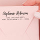 Elegant Modern Hand Lettered Script Wedding Invitation Return Address Self Inking Stamp. These full name address stamps featuring your first and surname in a pretty cursive handwritten style font typography and return address info easy to personalise them. Save time and add style to your wedding Save the dates Bridal Shower, House Warming, RSVP, Baby Shower, Birthday Party, Graduation Announcements, Christmas Card and return address label stamp for Invitation. They even make great Christmas gifts for family members and friends, wedding gift or cute housewarming gifts for a new couple!