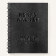 Customise and personalise this elegant black faux vegan leather notebook with 3 layers of typography in different shades to simulate the embossed look.