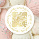 Business Gold QR Code Name Address Promotional Classic Round Sticker